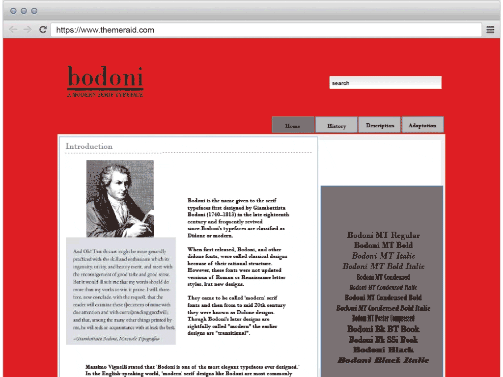 This project is based on the Bodoni Typeface. The deliverables of the project included poster, brochure and website design on Bodoni.